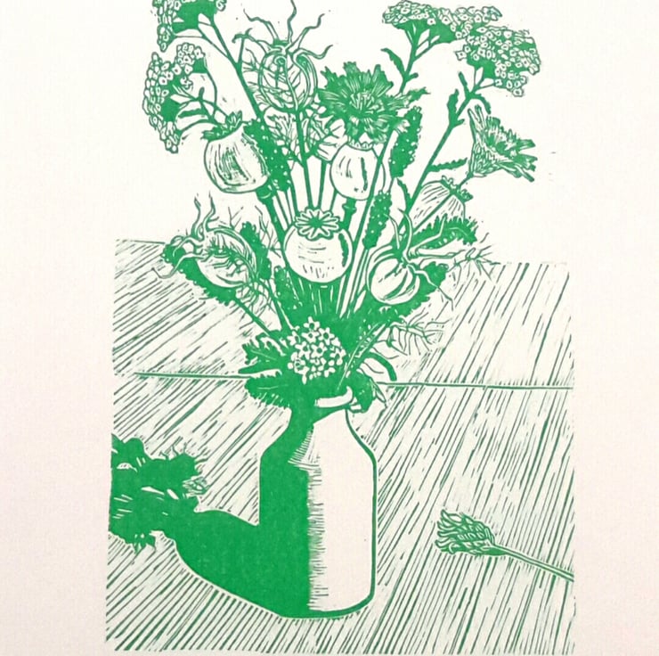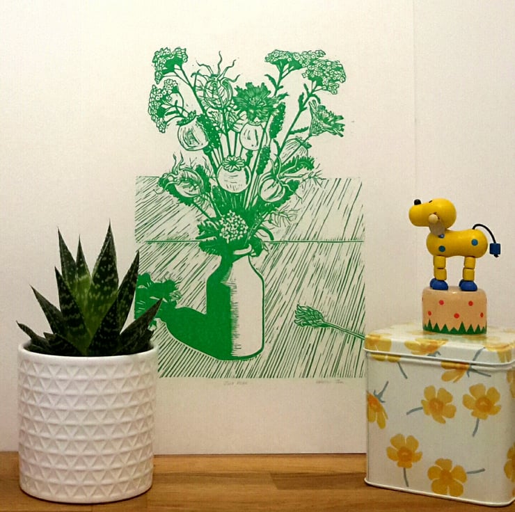 This lovely print started as a summer garden sketch of a little pot of posies collected from my allotment and garden.