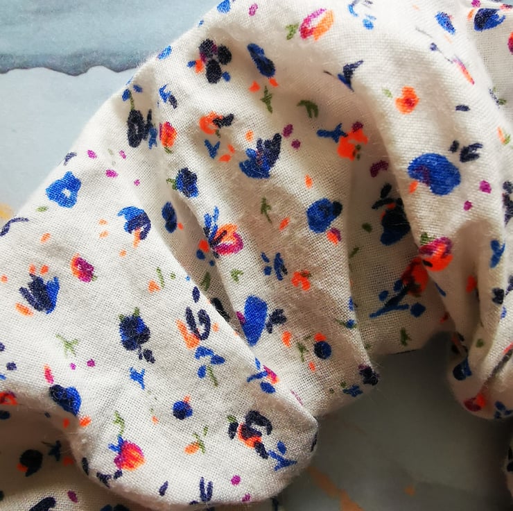 A beautifully soft cotton scrunchie. Recycled from a skirt and given a new lease of life. Handsewn.