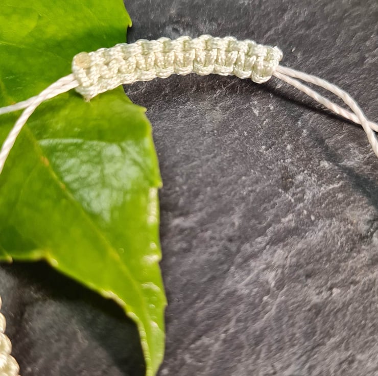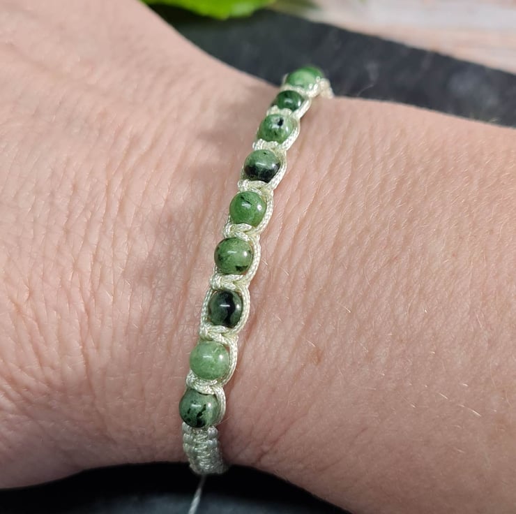 Adjustable macramé bracelet with 4mm Green Moss agate gemstones. I have used a strong, yet fine satin black specialist beaders cord, called "s lon".