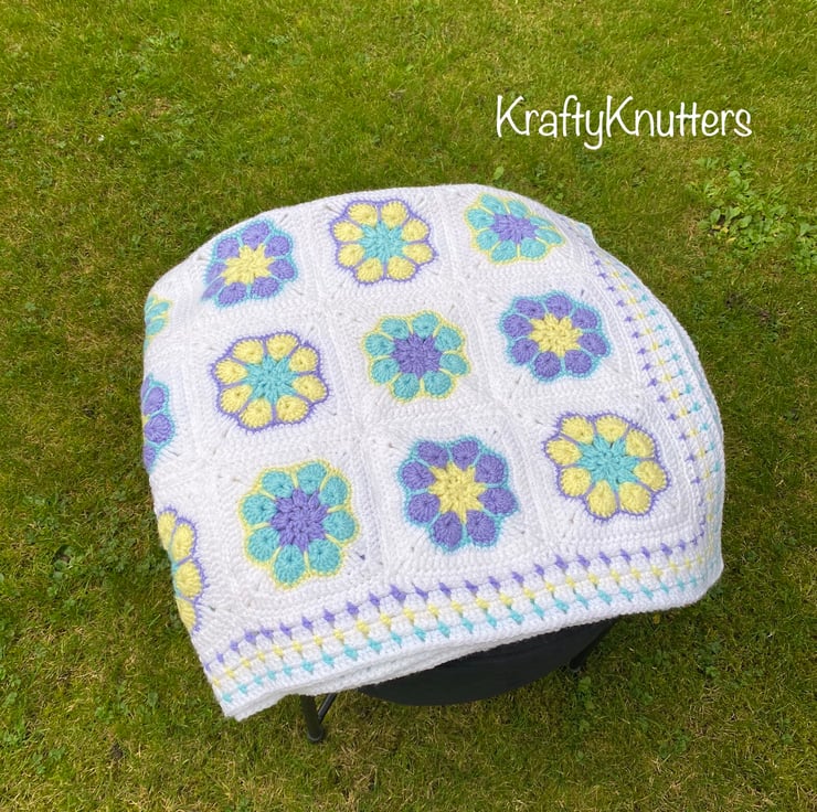 It is made up of crochet squares, which have been meticulously stitched together to create a lovely blanket, which would be perfect as a gift for a new Mum and her newborn.