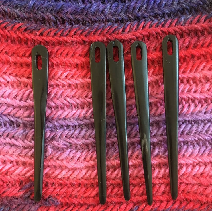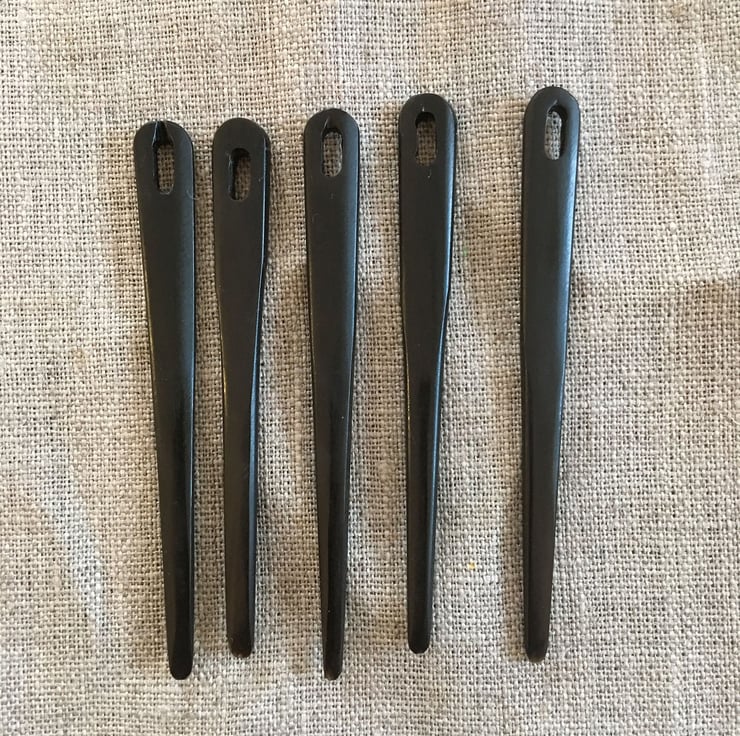 Nalbinding needles come in numerous sizes, lengths and materials. Which needle to use is both a matter of personal preference, size of your hand and type of project you wish to make. As in knitting or crochet, smaller, thinner needles are best used for finer weights of yarn such as 4 Ply or sock yarn. Needles with larger eyes can accommodate thicker yarns.