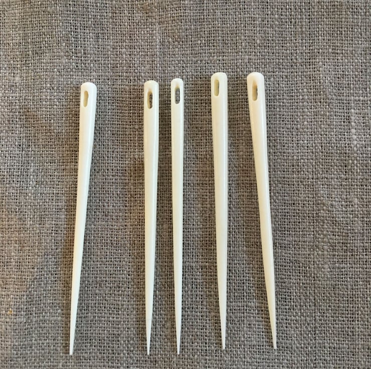 Nalbinding needles come in numerous sizes, lengths and materials. Which needle to use is both a matter of personal preference, size of your hand and type of project you wish to make. As in knitting or crochet, smaller, thinner needles are best used for finer weights of yarn such as 4 Ply or sock yarn. Needles with larger eyes can accommodate thicker yarns.