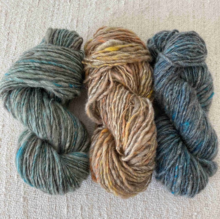 This hand spun wool is suitable for knitting, crochet, hand weaving, Saori weaving, tapestry, nalbinding and other crafts. The wool is non-superwash so the completed project can be felted if you wish.