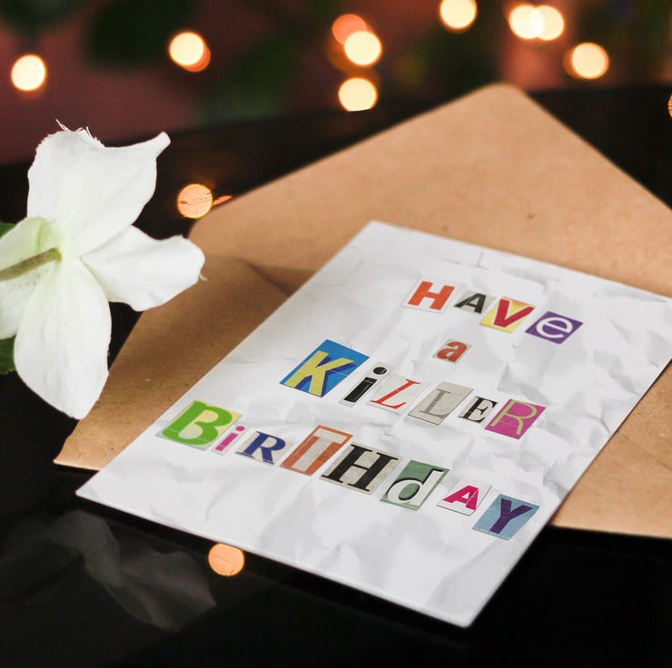 The perfect alternative birthday card for your partner in crime inspired by true crime and pop culture.