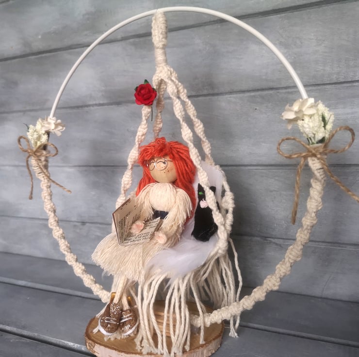 This darling, ginger-haired doll reading a meringue book would make a charming gift for a birthday or to express your affection to a special someone.