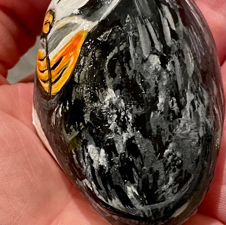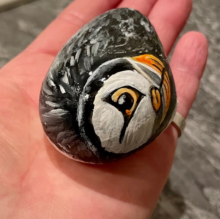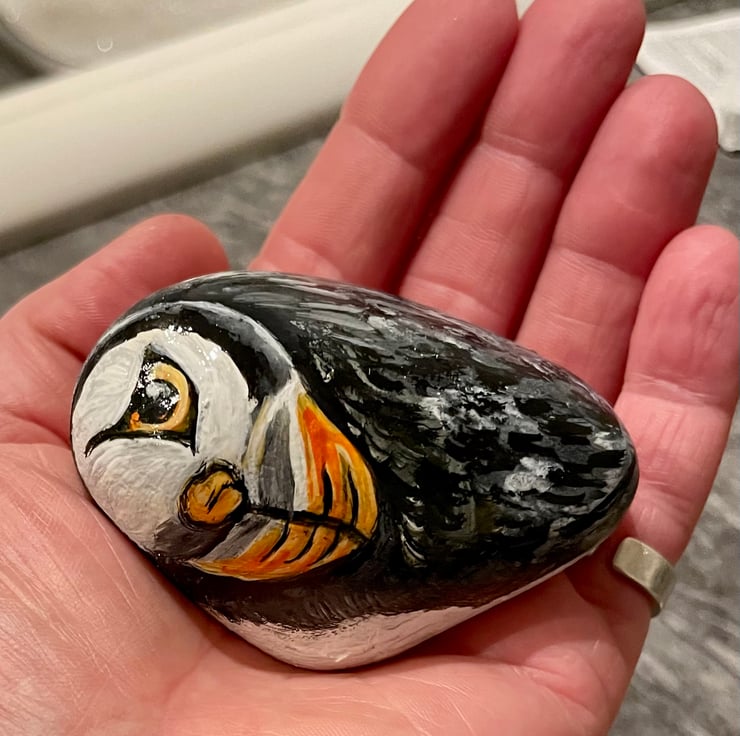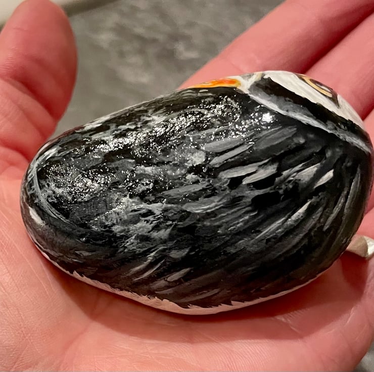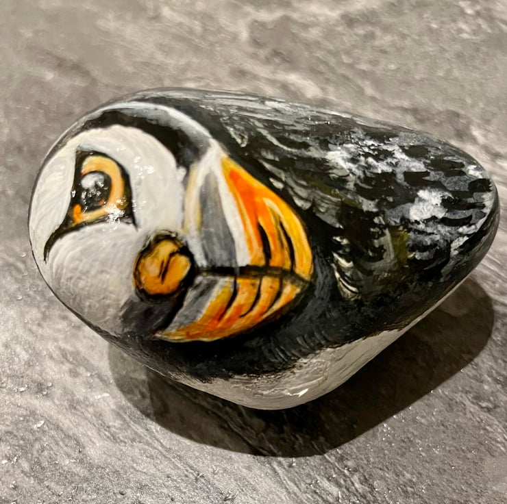 This puffin has been painted onto a smooth stone and glazed for a protective glossy finish
