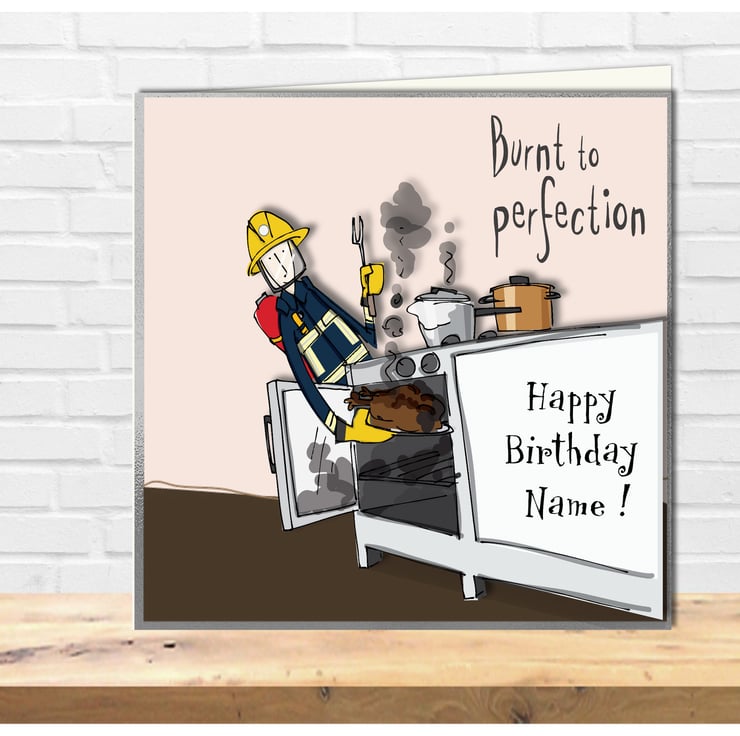 Ideal birthday card for a fireman or amateur chef (who may need a fireman!)