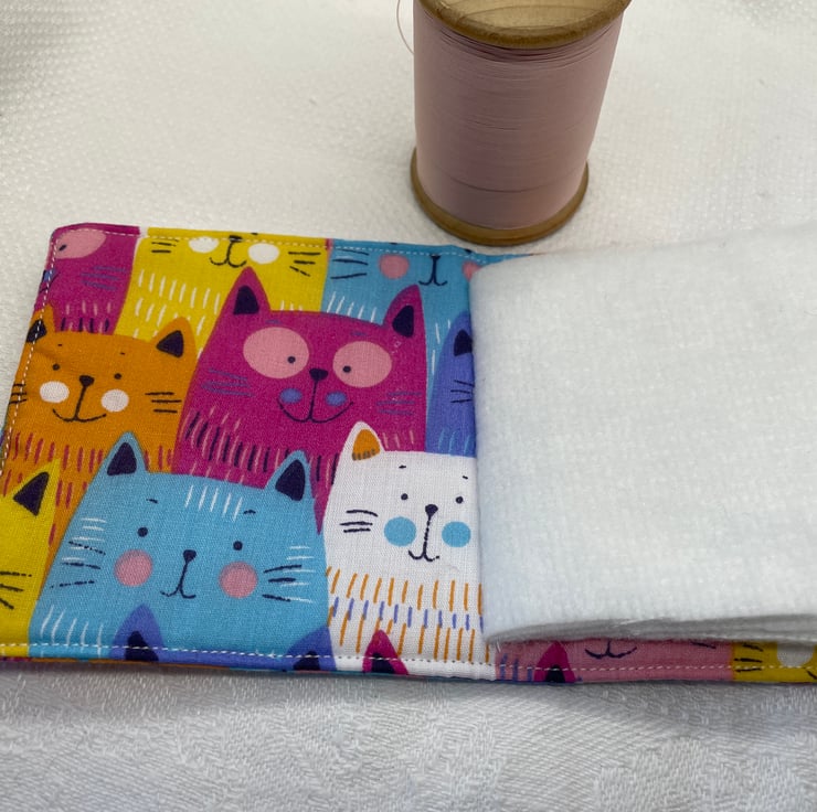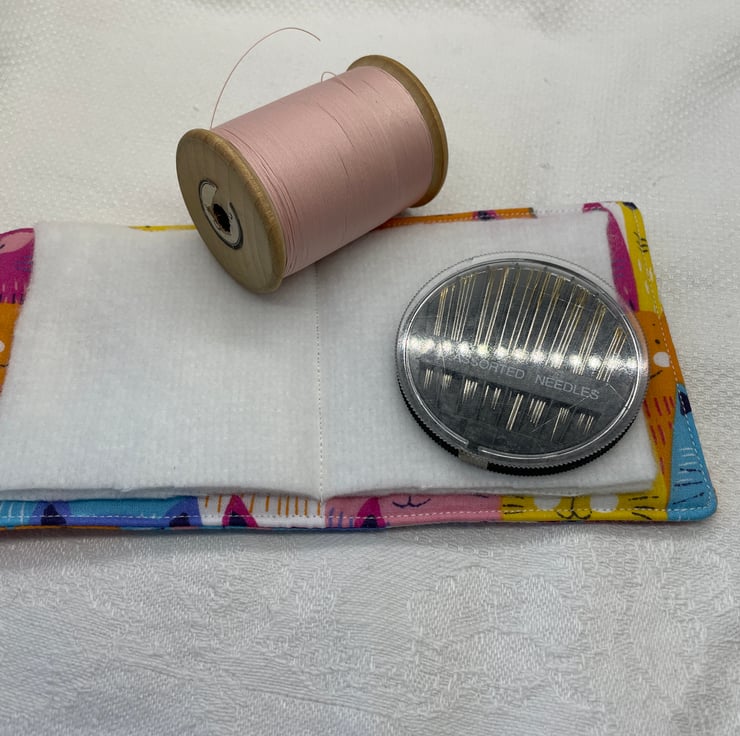 Cat needle case. Lightly padded with four soft fabric pages for needles.