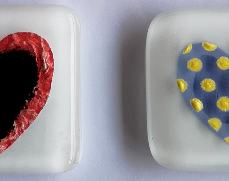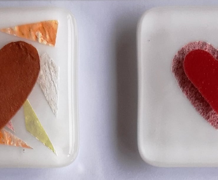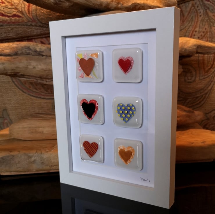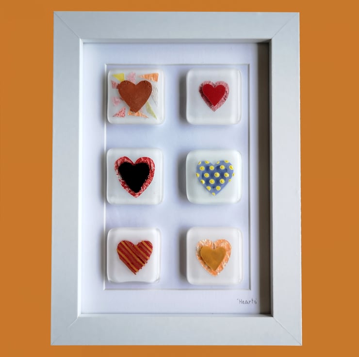 Handmade Fused Glass 'Hearts' Picture.