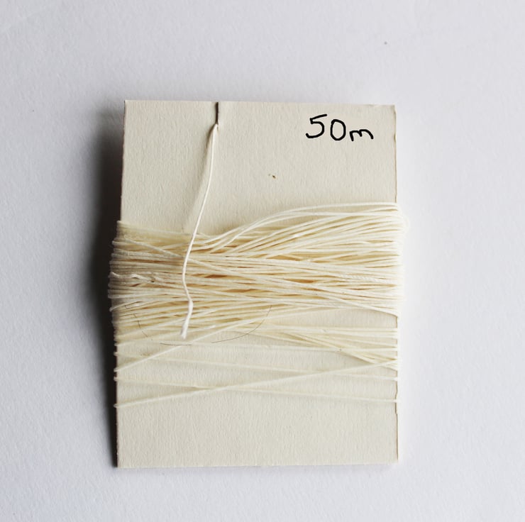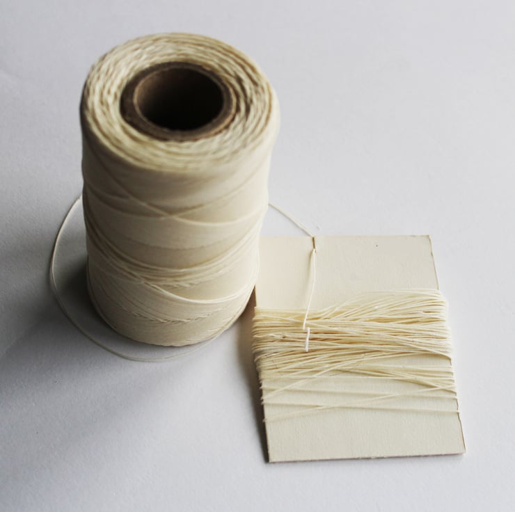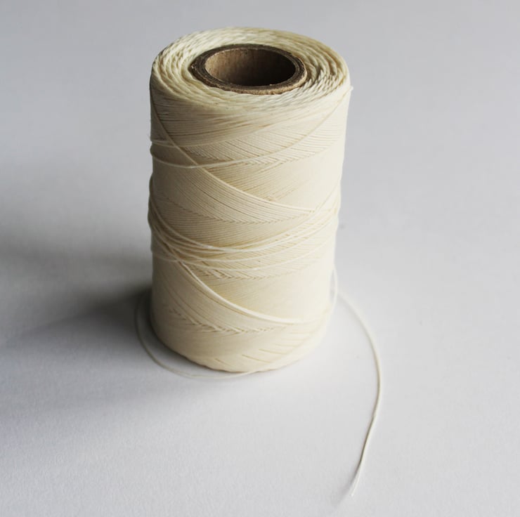 Excellent quality, lightly waxed, cotton and polyester thick thread for bookbinding.