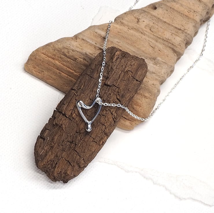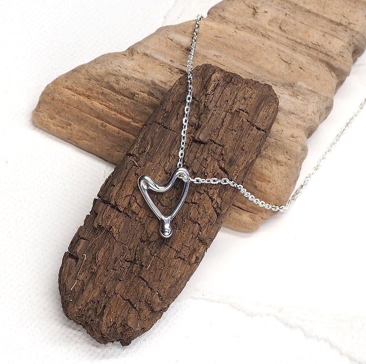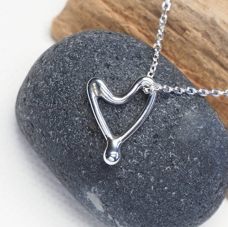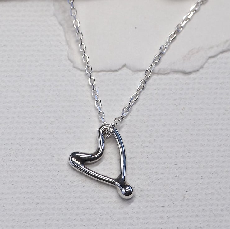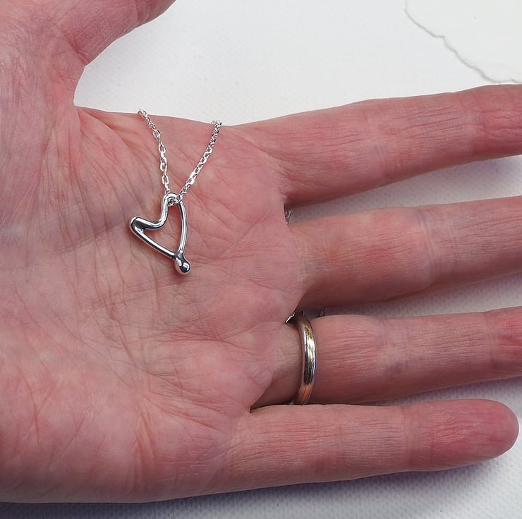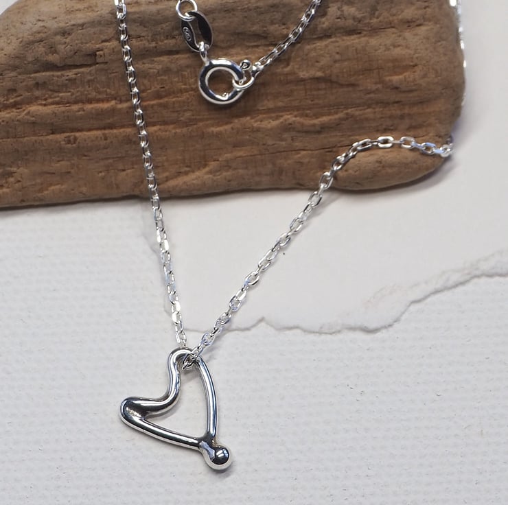 The heart has been free formed and fused from Argentium silver 935 wire, to create an organic abstract shape. I've kept it simple by hanging the heart directly onto a sterling silver diamond cut trace chain. This allows it to move around freely. The silver heart has been polished to a bright shine to finish.