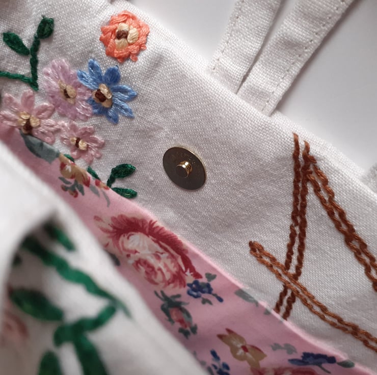 It is lined with a vintage inspired roses fabric, and is finished off inside with a facing for a neat finish.