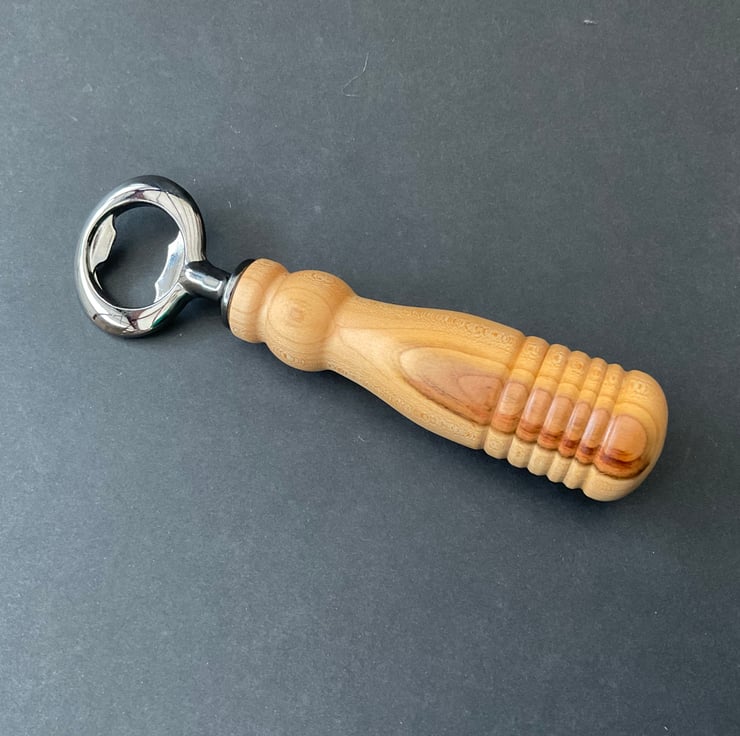 Neighbour offered me some plum wood from a fallen plum tree, which I seasoned for a couple of years and then as the wood was small I decided to make some useful bottle openers with it.