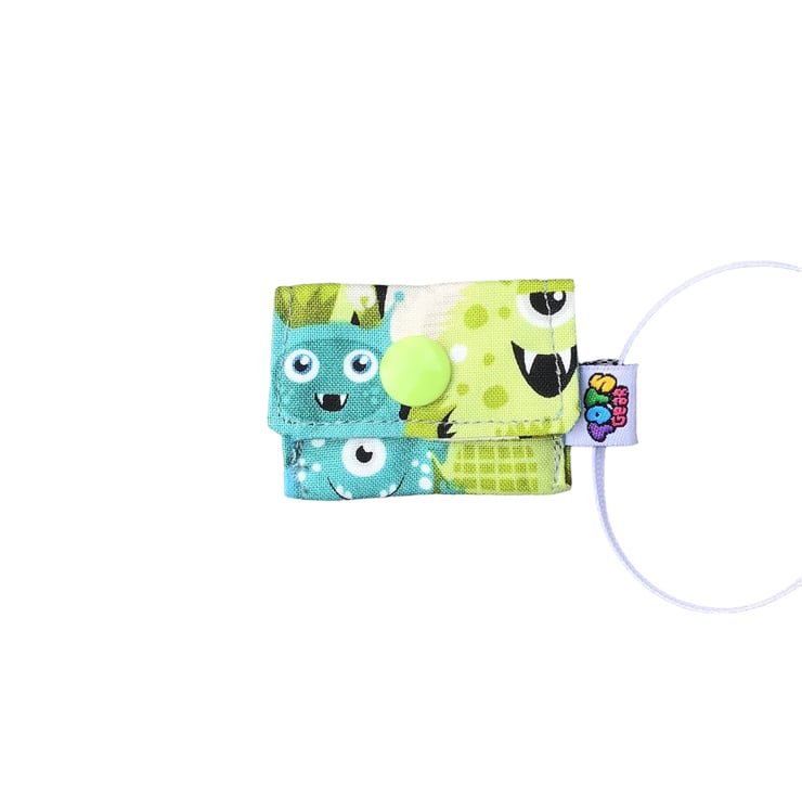 The Mini Tooth Pocket measures 2” x 1.5” (5cm x 3.5cm)