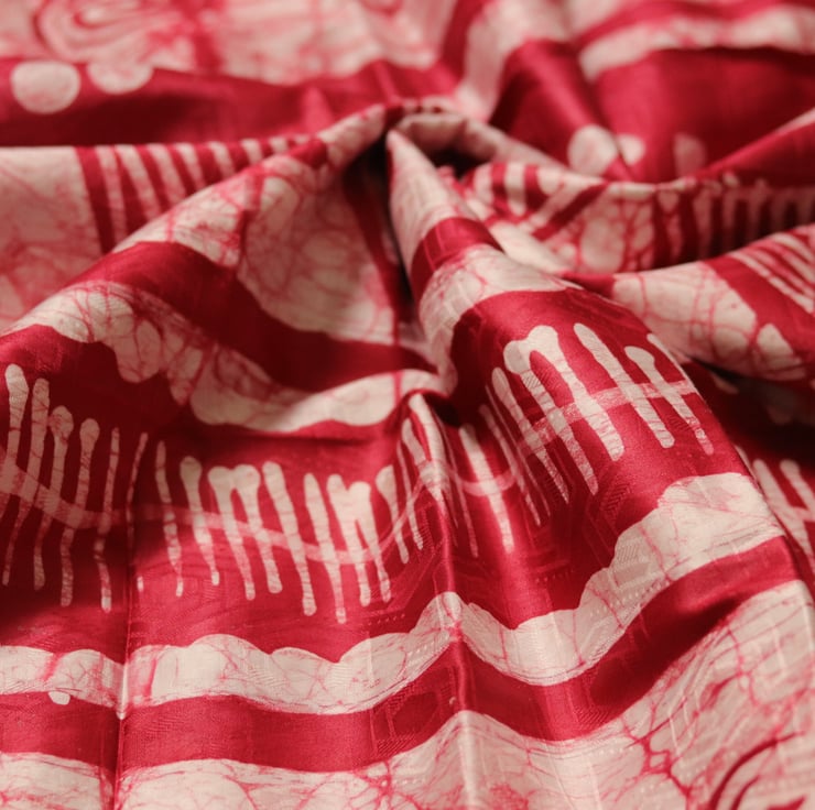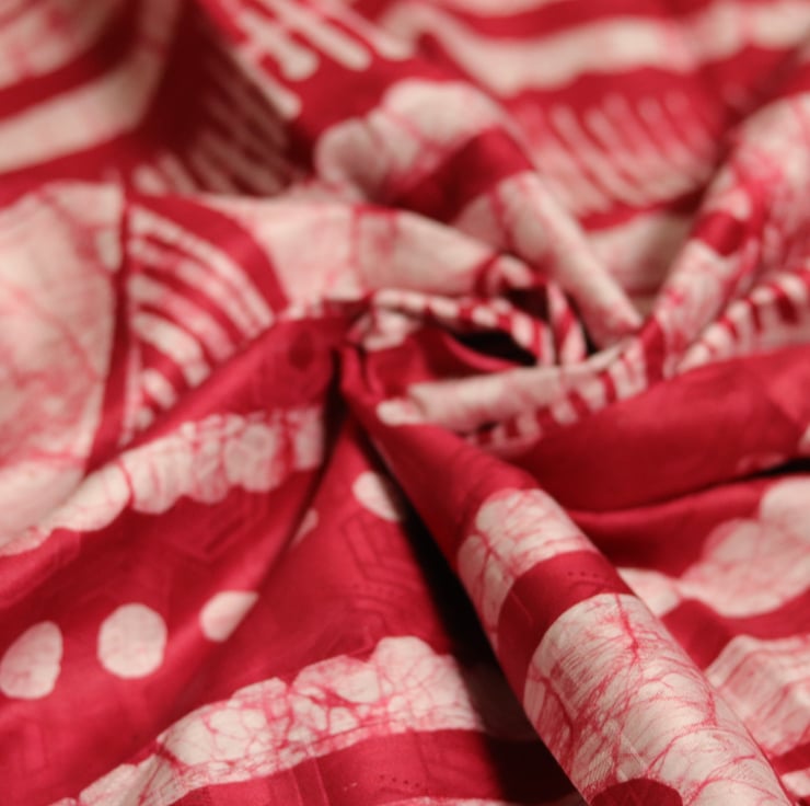 Fabric sold by the yard; this multicoloured hand printed African adire batik print is very versatile and suitable for clothing (as illustrated), home decor, fashionable accessories and a variety of needs.
