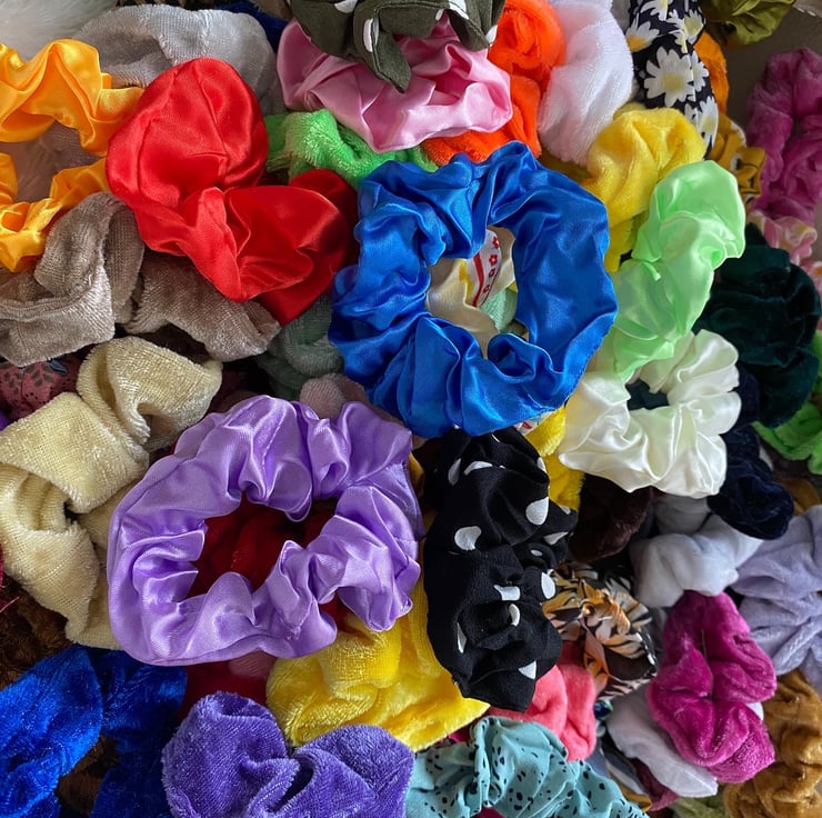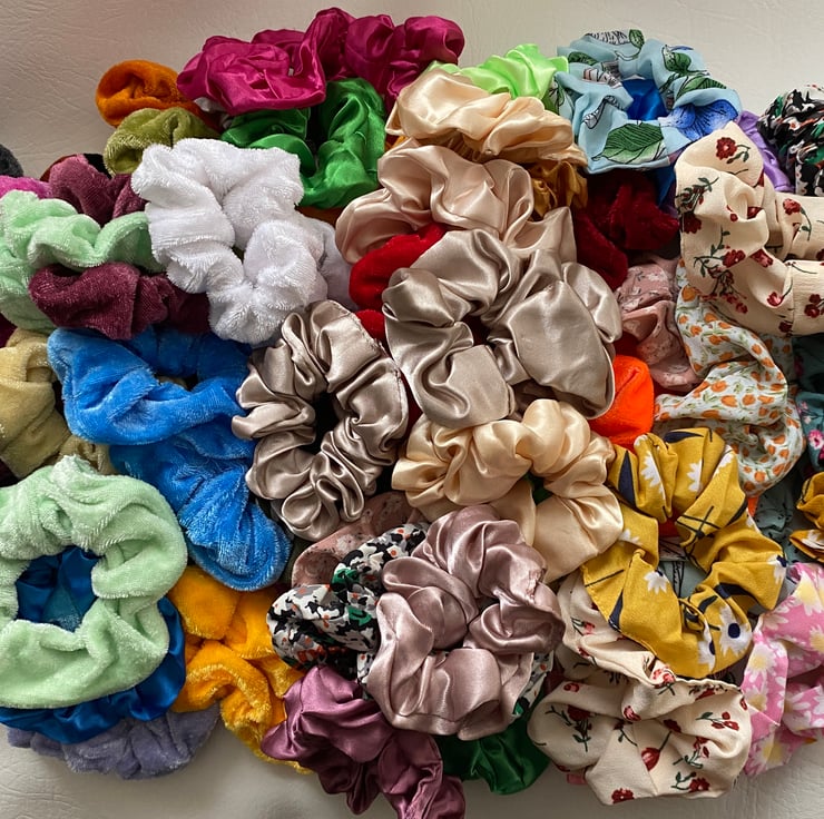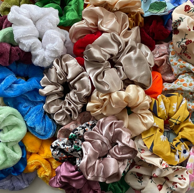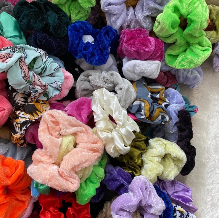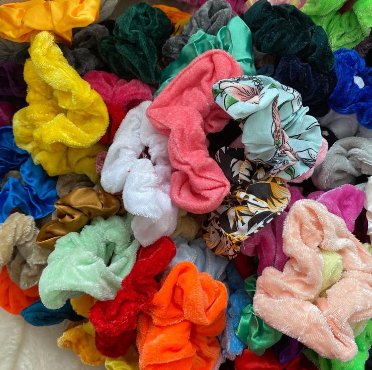Random selection of five scrunches . Made from velvet- cotton or satin .