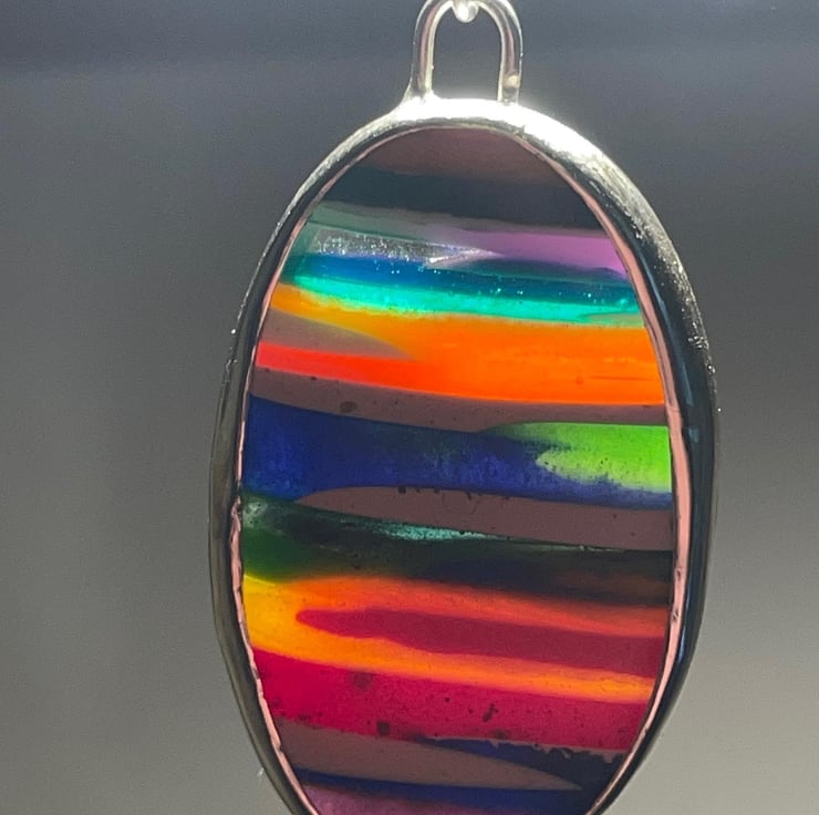 This is a 3cm tall resin pendant edged with fine silver and supplied with an 18" silver chain.
