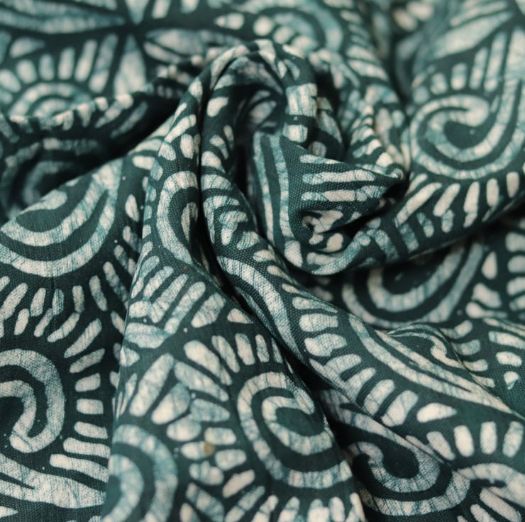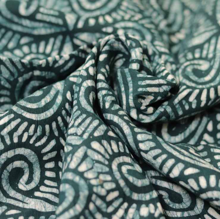 Fabric sold by the yard; this multicoloured hand printed African adire batik print is very versatile and suitable for clothing (as illustrated), home decor, fashionable accessories and a variety of needs.
