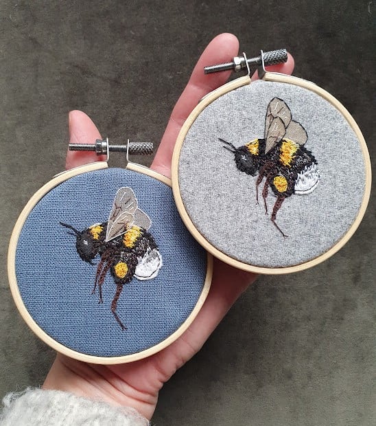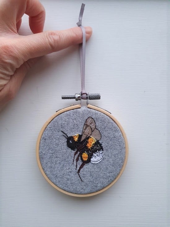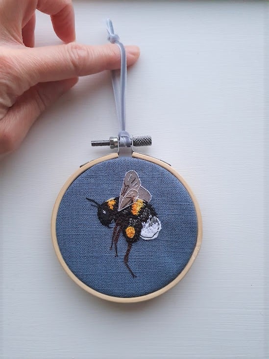 Handmade hanging Bee hoop decorations.