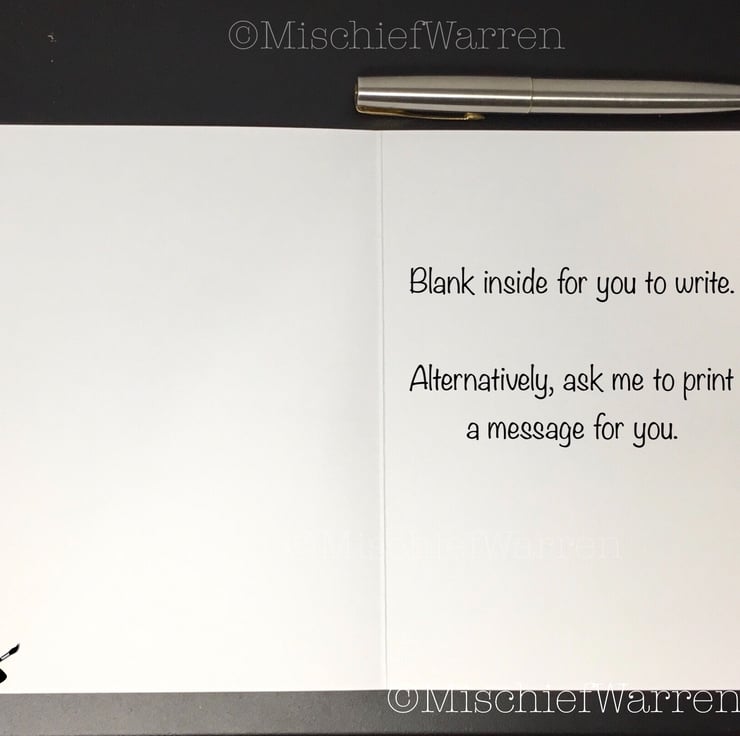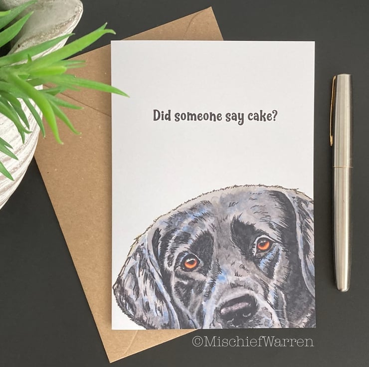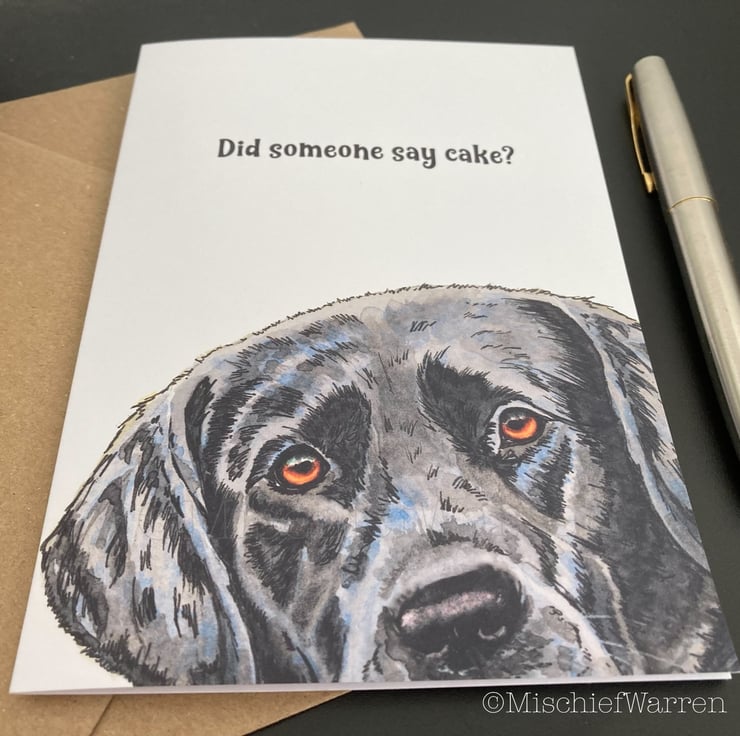 This Black Labrador card features a print of my ink and watercolour illustration of my aunts black Labrador dog. Can be personalised for any occasion; birthday, Valentine’s day, Mothers Day, Fathers Day, Thank you, Wedding, Anniversary or Christmas perhaps. Blank inside, or I can add your message and/or send direct to the recipient.