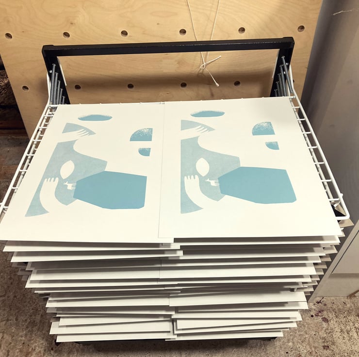 Printed by myself in Sheffield, UK. Each one is slightly different, as is the nature with screen-prints, and the paper may have tiny marks on the surface, as is the nature with recycled paper.