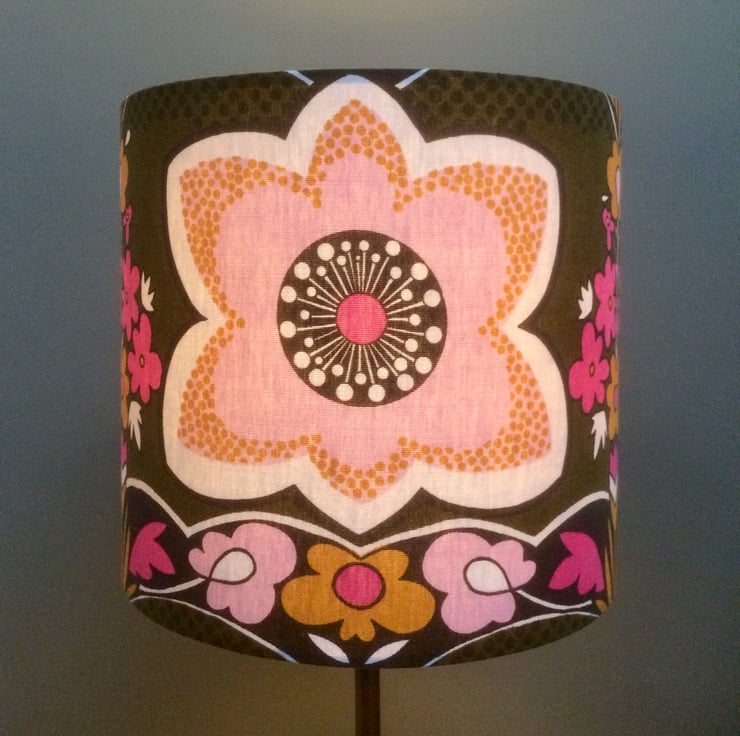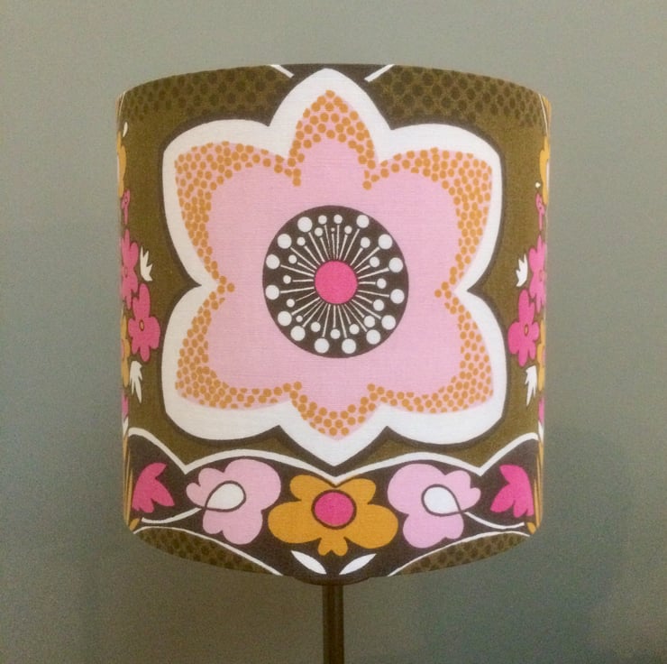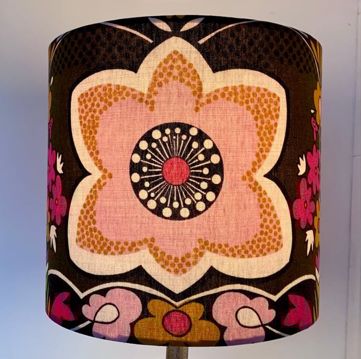 Retro Pink Floral Lampshade 70s 60s Grace Sullivan ' Garrick' Moygashel vintage fabric