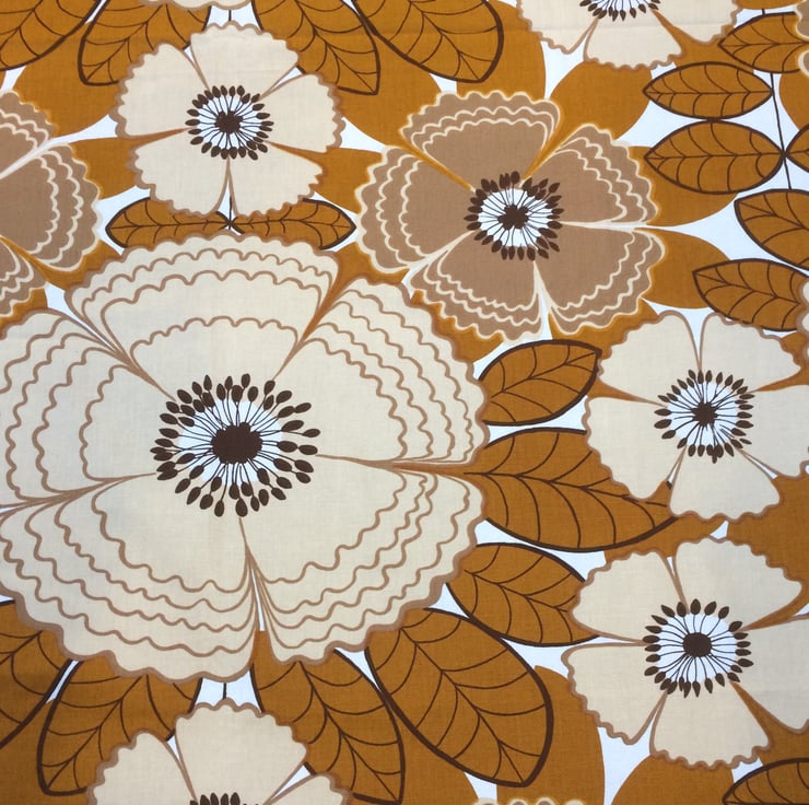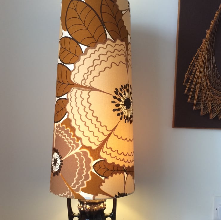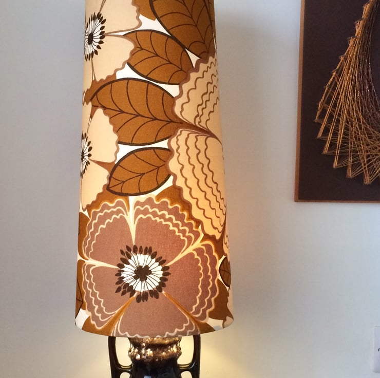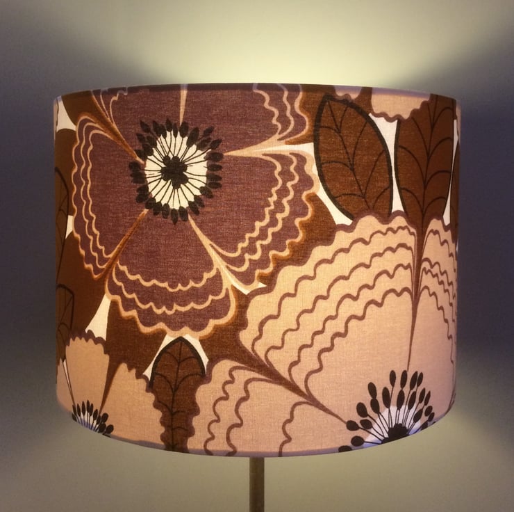 Fab Retro BIG Floral Flower Power Lampshade 70s 60s Brown Mustard vintage fabric