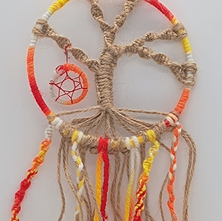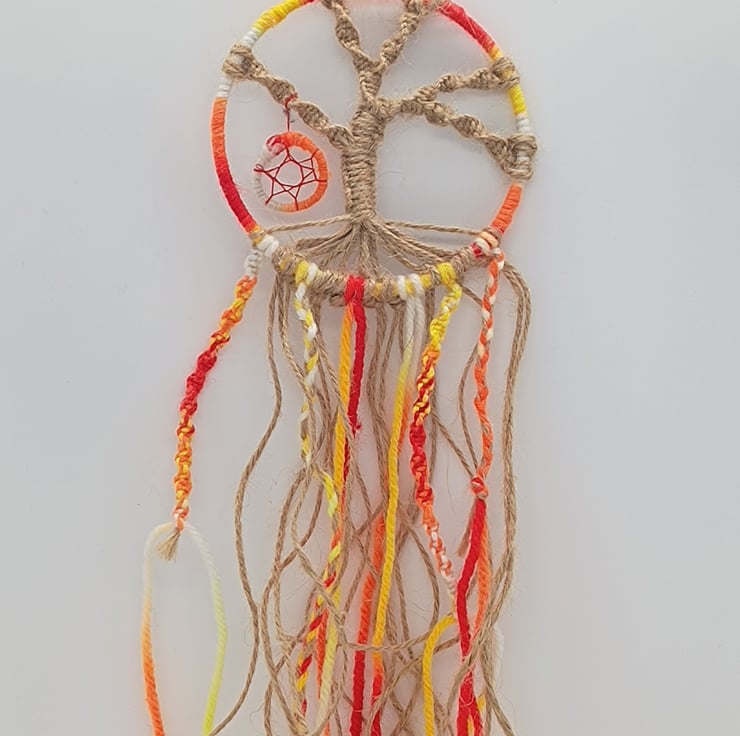Colourful dreamcatcher, brightens up any room. featuring a loop at the top for easy hanging.