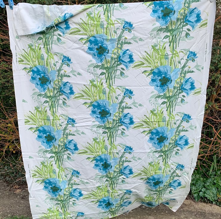 Blue Poppy Lampshade option in 70s 60s CARMEN Jonelle vintage fabric