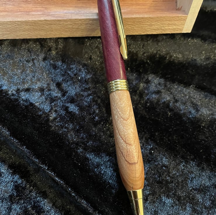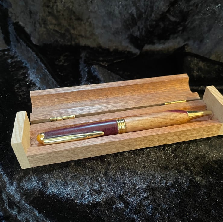 This is a twist operation pen I have used a lovely hardwood blank with dual colours and a unique green glitter resin infill to give an unusual and unique look. The pen will be supplied in a wooden presentation box( inscribed if required)