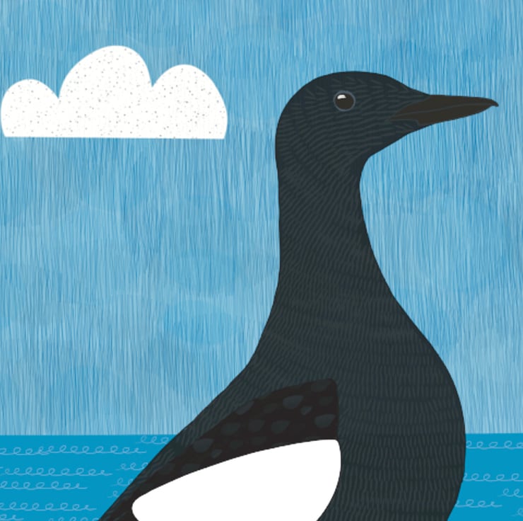 I painted this black guillemot for Chirptember 2022. The beautiful black guillemot (which is still known by its Norse name tystie in the Orkney Islands) used to be hunted for food. Today, this practice has thankfully been outlawed in the UK since 1981. However, the bird is sadly on the Amber List of Endangered Birds, meaning that their conservation status is of moderate concern.
