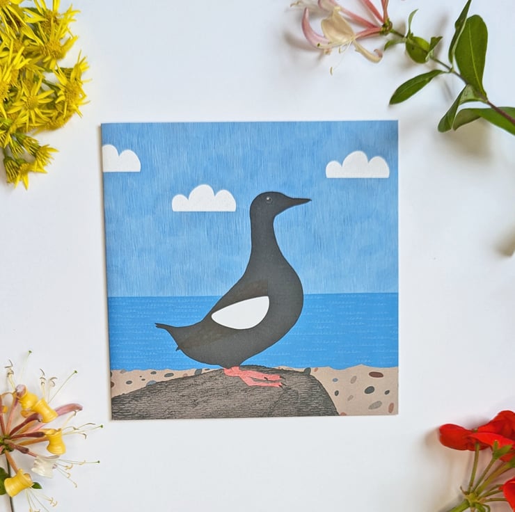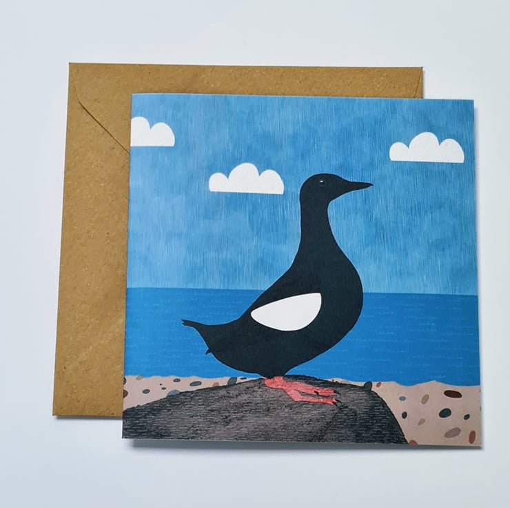 My digital painting of a black guillemot or tystie (Cepphus grylle) has been professionally printed onto 350GSM recycled card.