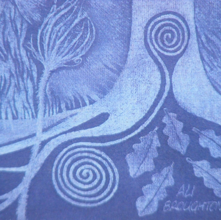 The image for Moonlight Hare came from an original painting that was inspired by the landscape around my village. Here in the lazy summer months we would walk in the dusky evenings and see hares around the fields, frozen like statues or scuttling away as soon as they could. The village has wonderful large old Oak trees that line the boundary of the fields and the whole sense of being out in nature, witnessing the hare in its natural environment and my love of the moon all came together in this painting, here as a greetings card.