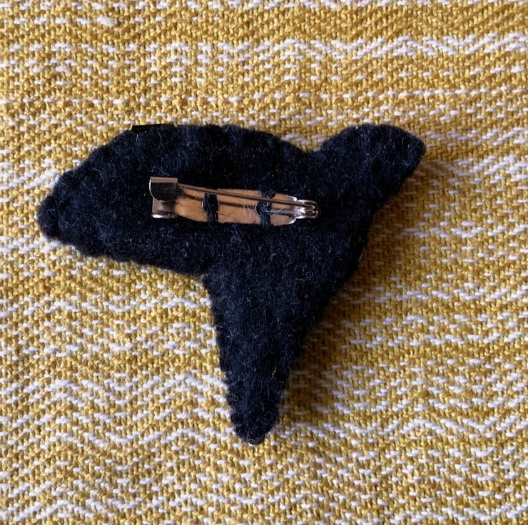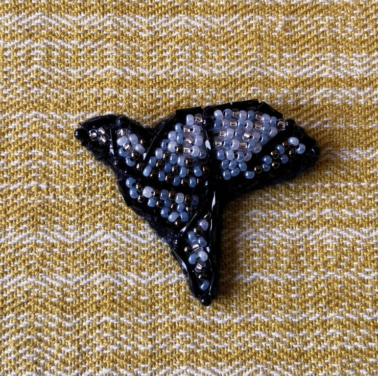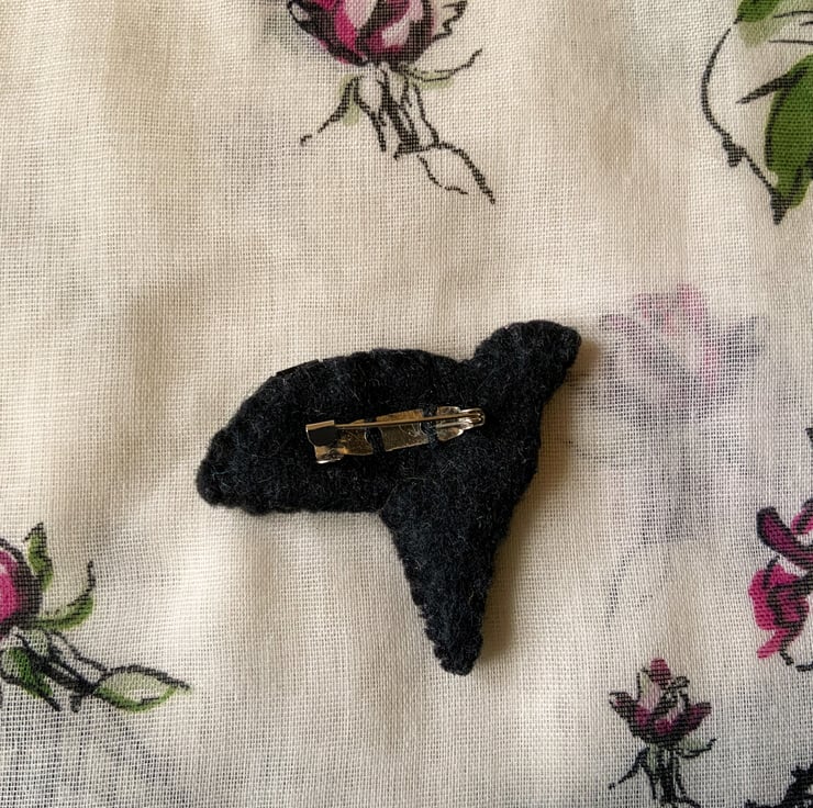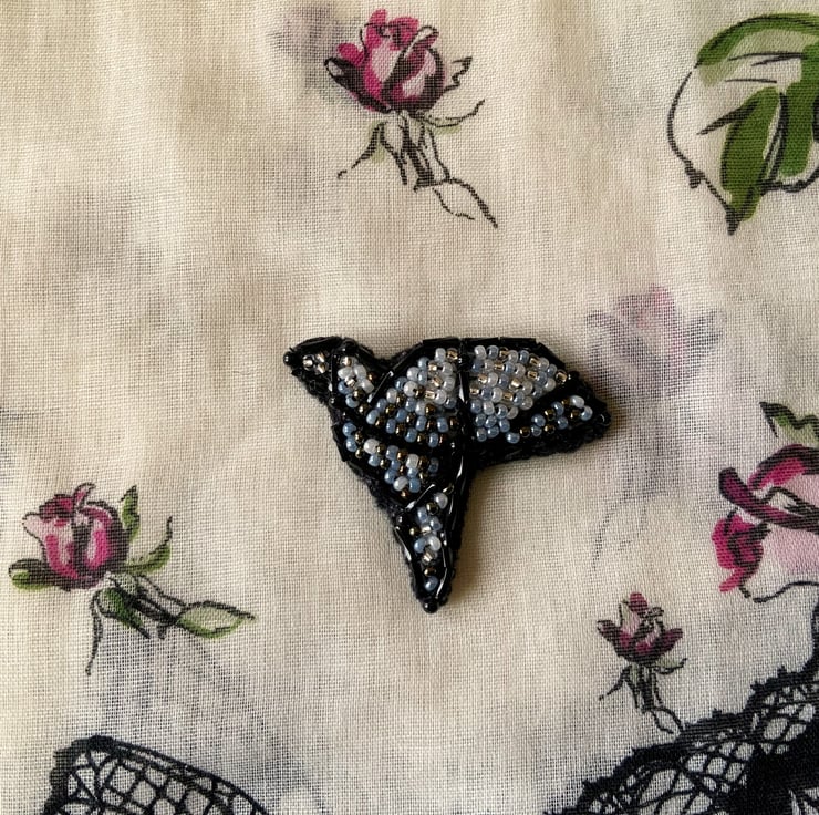 It is a small design which could be worn on a hat, scarf or to decorate a lovely dress. It would look great on a wool jacket or denim jacket.