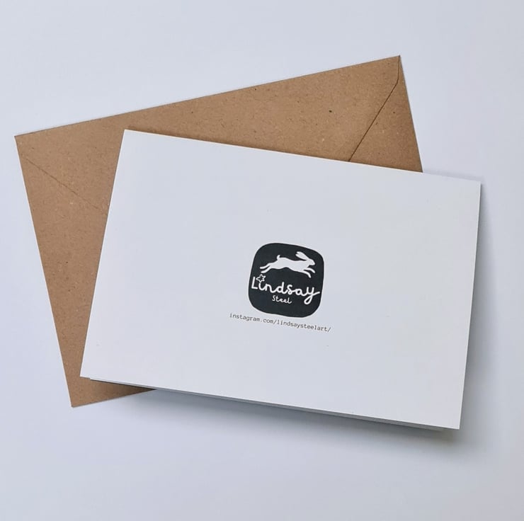 This large greetings card (A5) measures 148mm x 210mm and has been professionally printed on 350GSM recycled card certified by FSC®. The card comes with a kraft envelope that is also made from recycled paper.