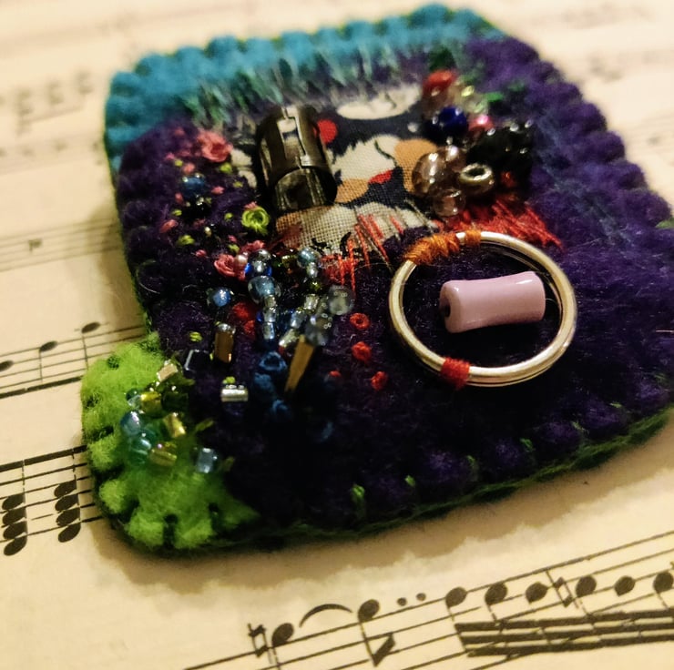 After attending a workshop exploring hand stitching and decorative embellishments as a creative art form I was inspired to create a collection of felted brooches.