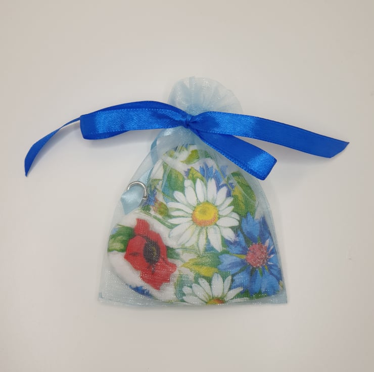Supplied in an organza bag finished with bright blue ribbon this lovely heart would make a great gift for a birthday, Mother's day, anniversary, valentines, etc.
