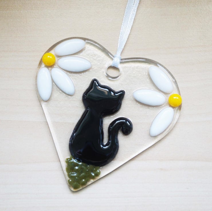 Handmade Fused Glass Cat Suncatcher