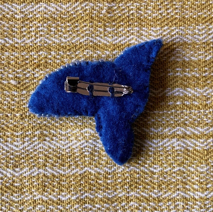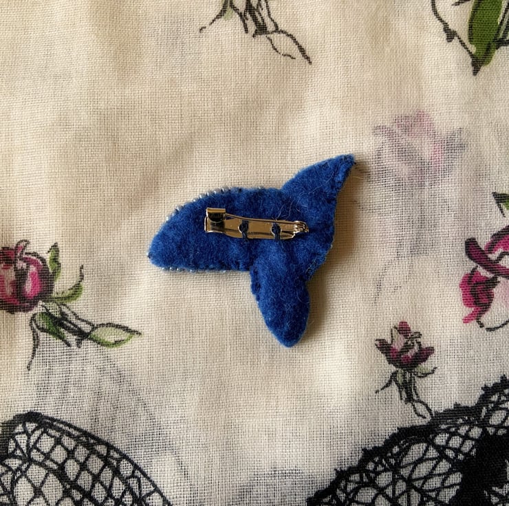 The back is in blue felt with a simple silver metal pin brooch.
