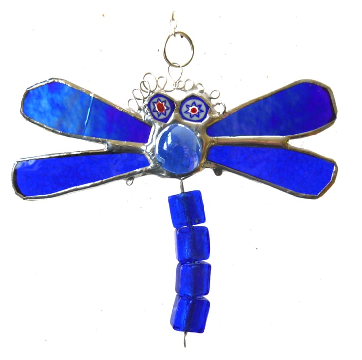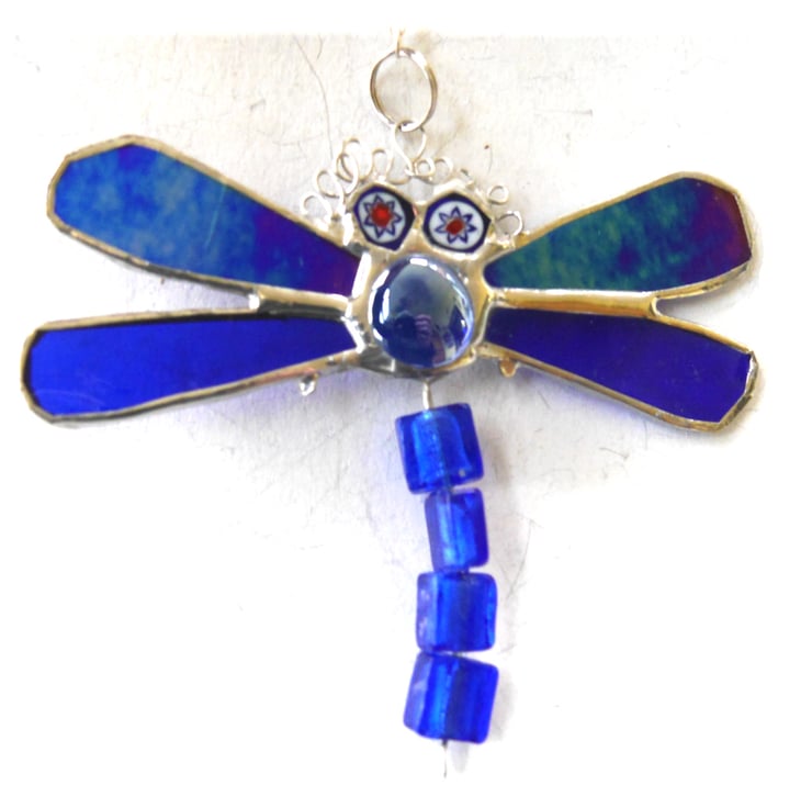 A pretty little dragonfly with blue wings,blue nugget for the body and more blue beads for eyes and tail.