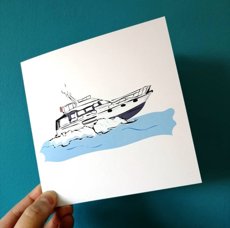 Boat Card, speed boat card, sailing boat card, birthday card, speedboat, sailing