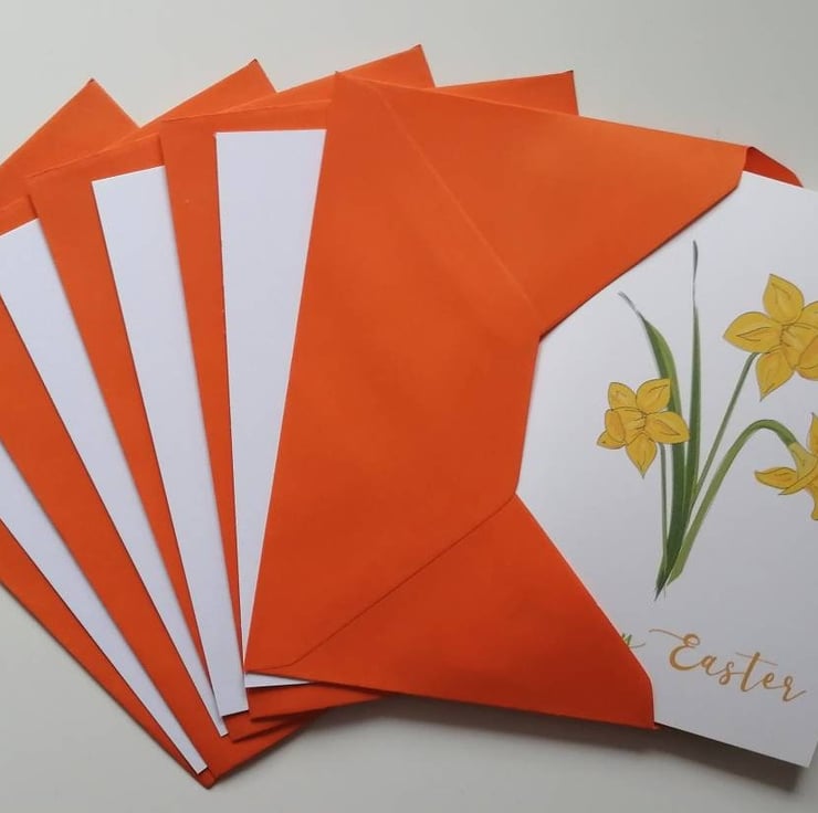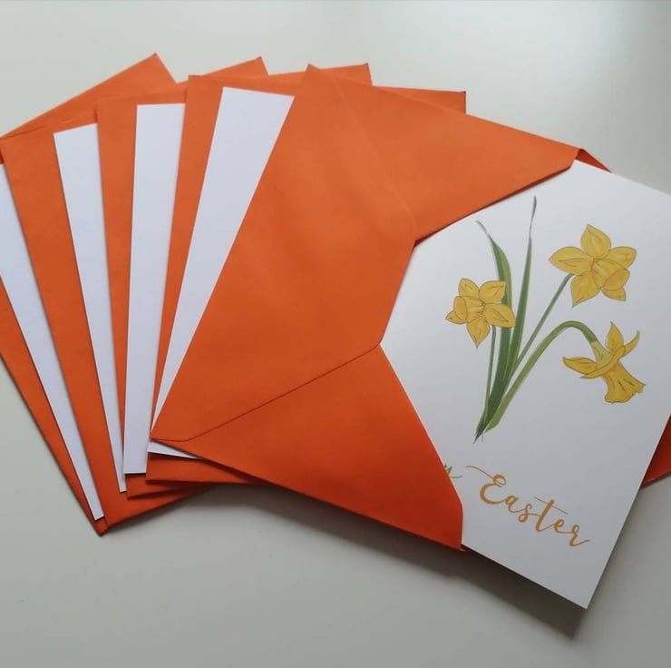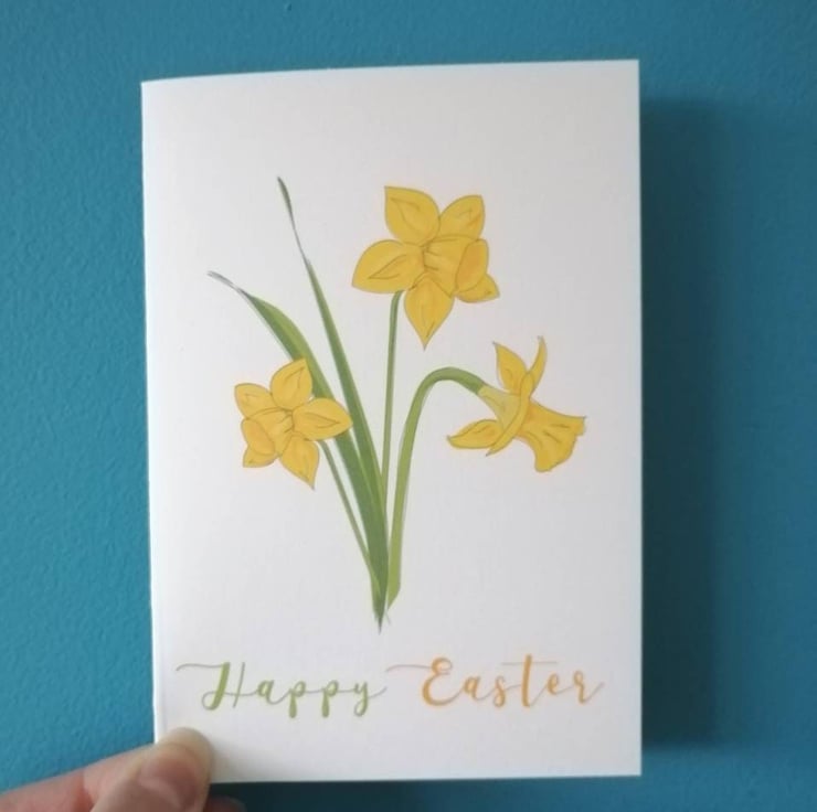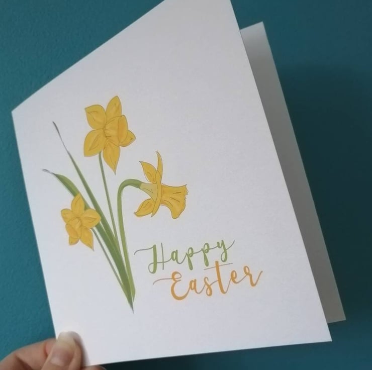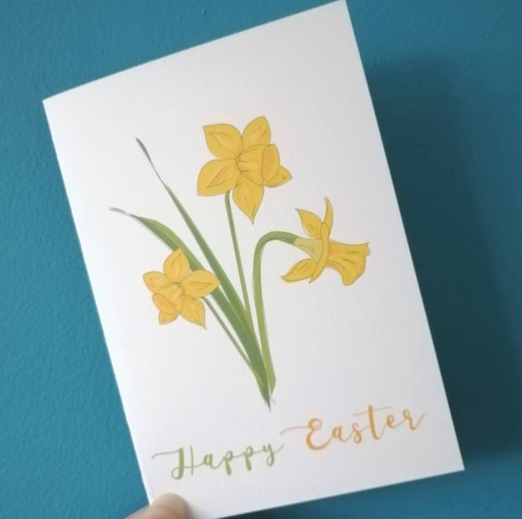 Happy Easter is printed onto the front of these cards with my daffodil illustration. Please note that cards are left blank inside.