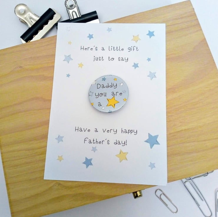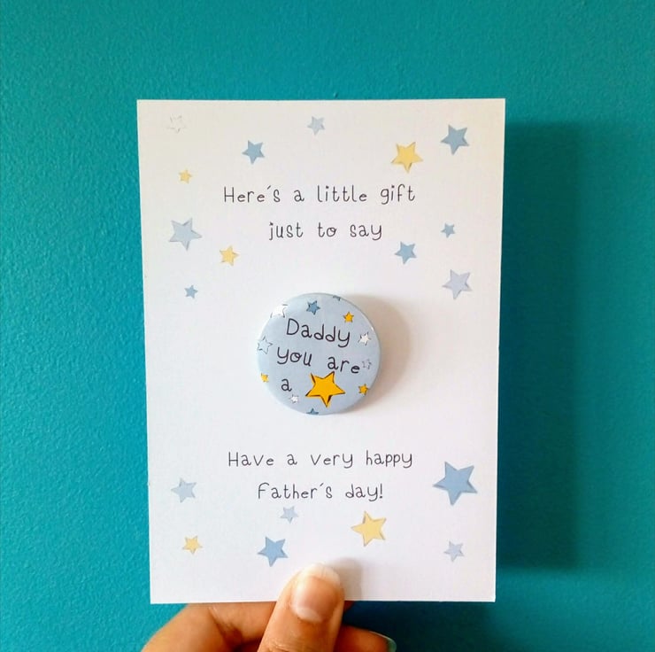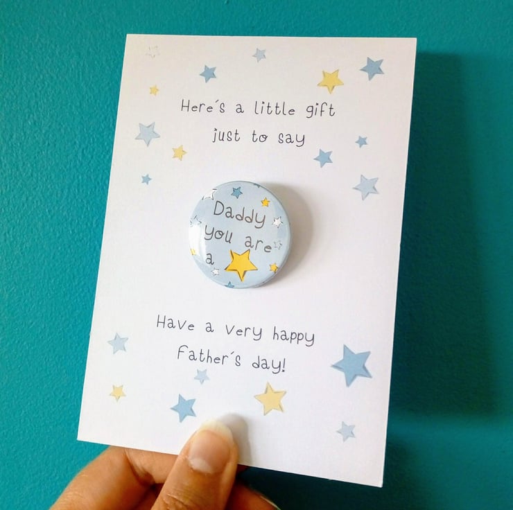 Handcrafted in my studio this cute 38mm badge and accompanying card is the perfect little gift to send to on father's day.