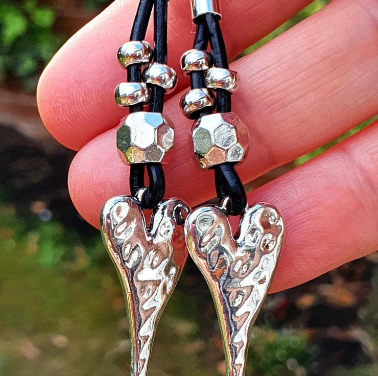 Handmade leather heart earrings. Unusual leather earrings. Rustic leather earrings.