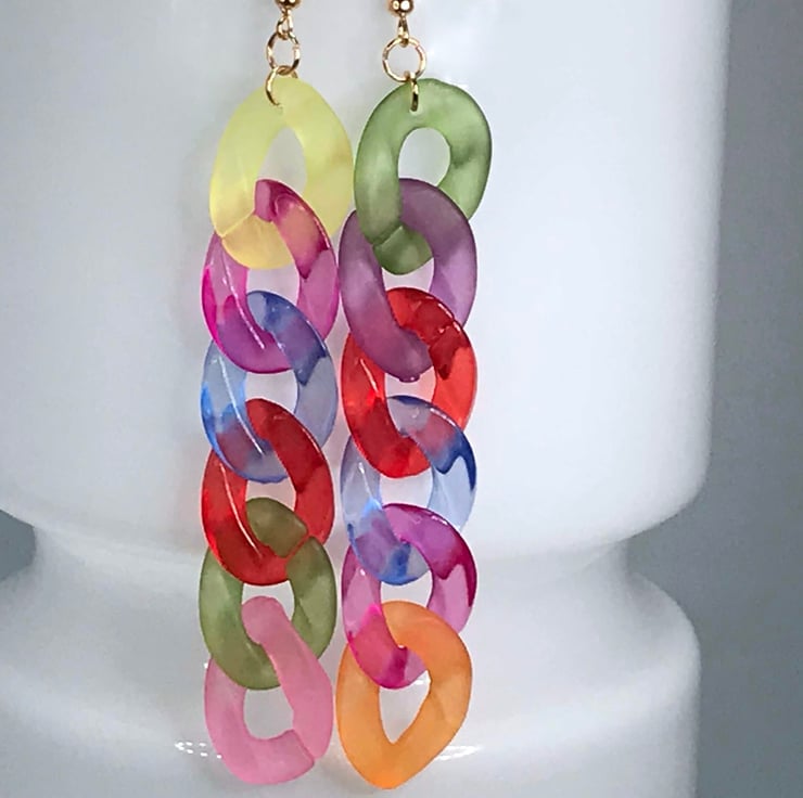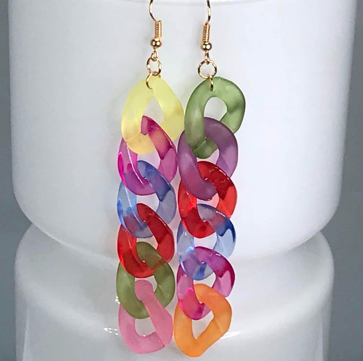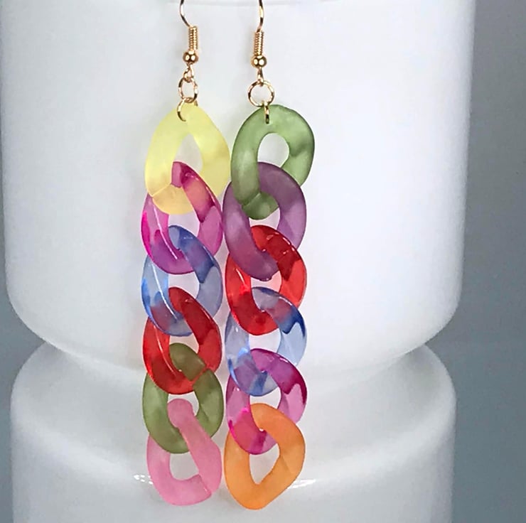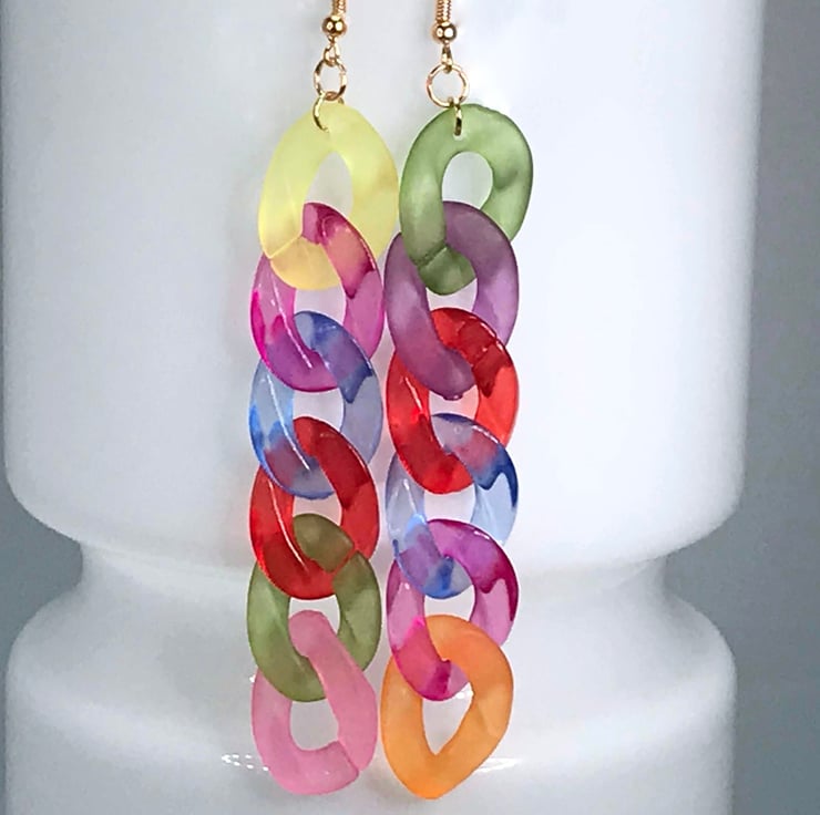 frosted acrylic chain earrings gift for her rainbow multicoloured gold plated