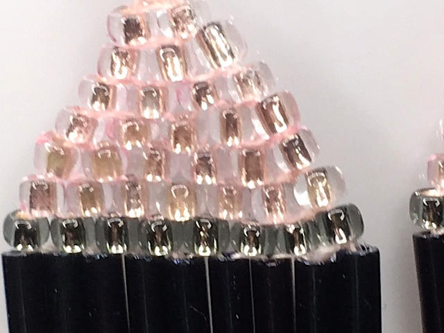 I decided to add pink at the top and bottom to give them more colour and to compliment the Toho 'metallic nebular' bugle beads.