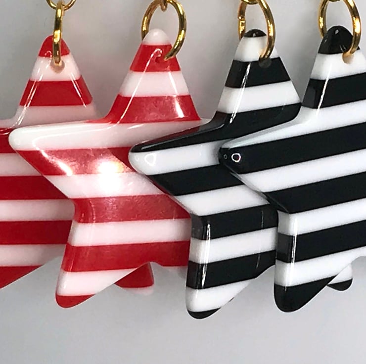 I've used striped acrylic little stars in multiple colours and paired them with star shaped gold pushback studs.