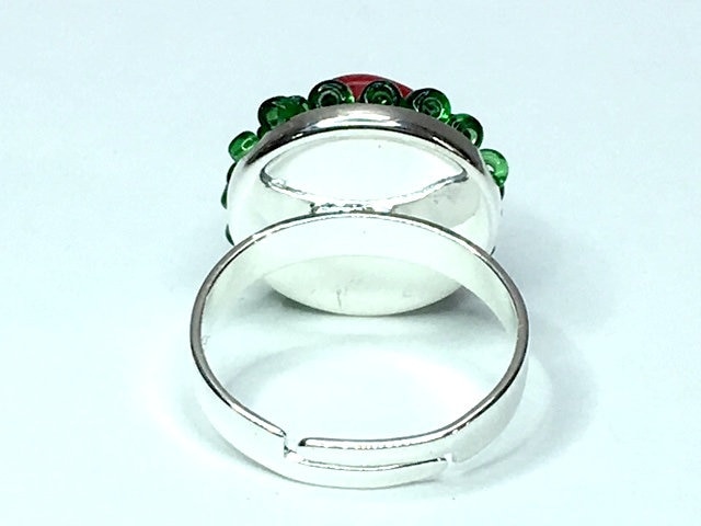 I've used Czech glass and Japanese glass seed beads on a mesh ring in sterling silver plate.