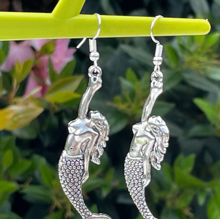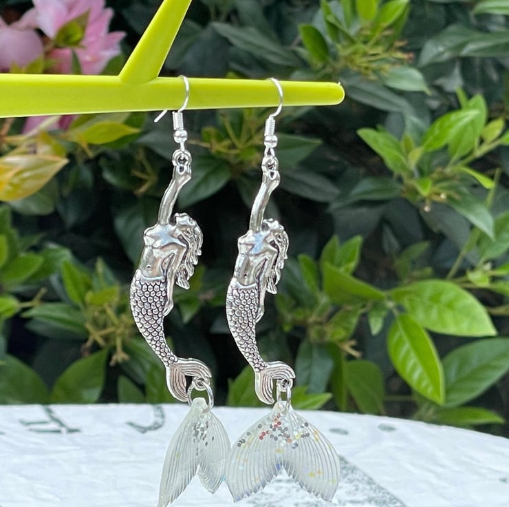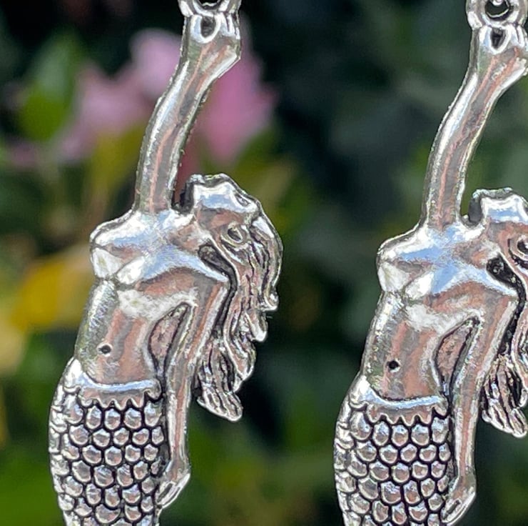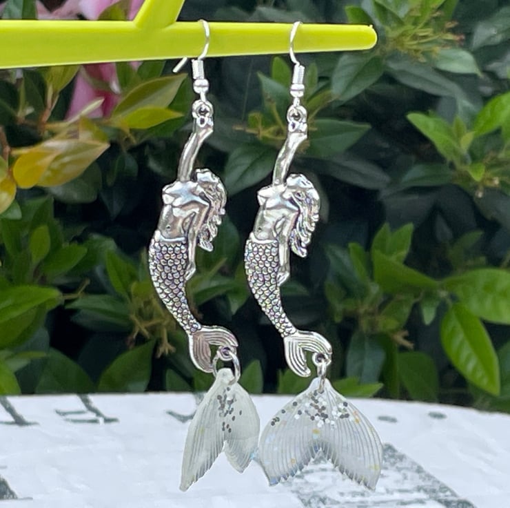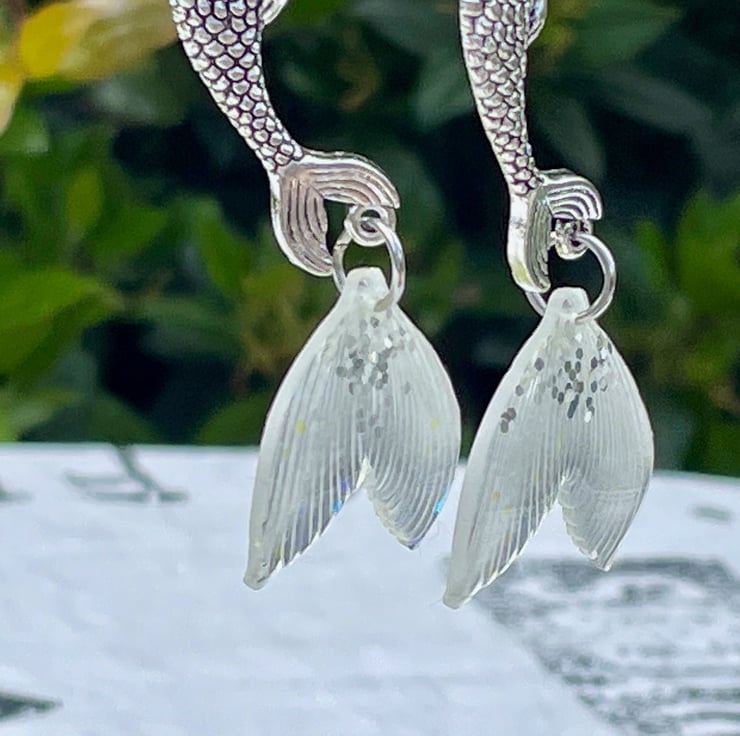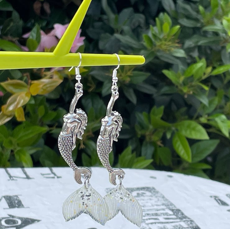 I've used gorgeous Art Nouveau style mermaid connectors and paired them with the most beautiful opal and glitter resin mermaid tails. I've finished off with silver plated hypo allergenic ear wires.