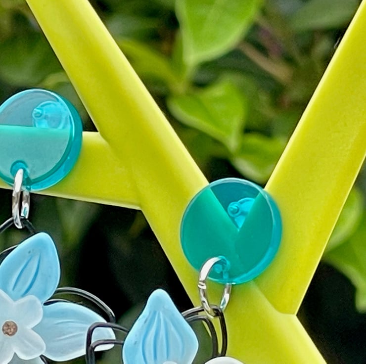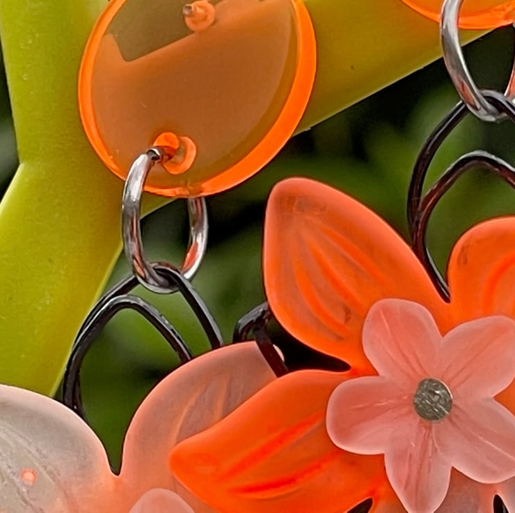 I've used these beautiful lucite two toned white and neon flowers and paired them with gorgeous black wire wrapped flower connectors. I've finished off with stunning matching hypo allergenic neon pushback posts. Yum.